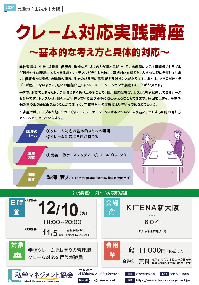 【大阪開催】クレーム対応実践講座のお申込受付中です