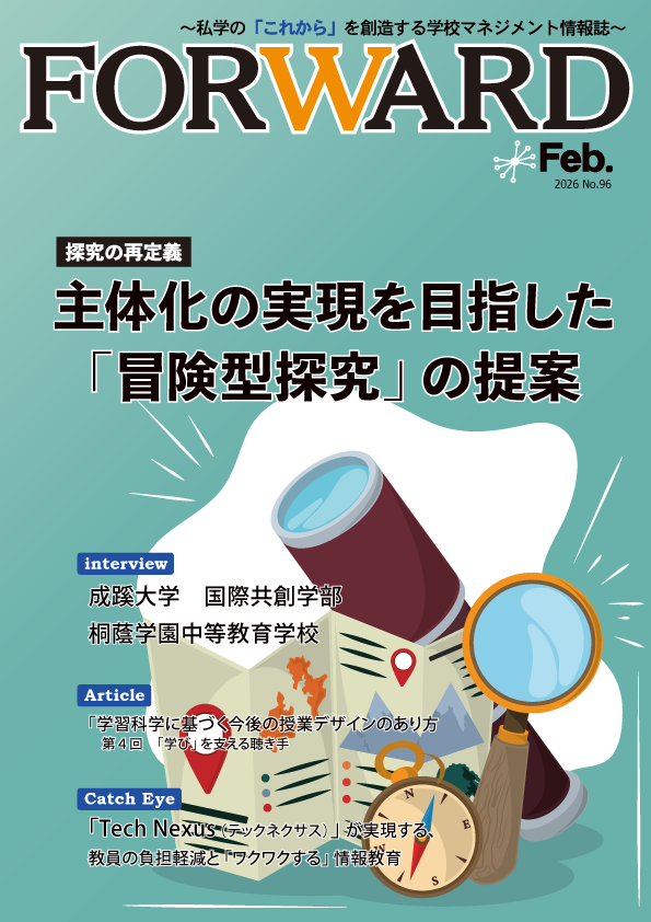 第96号では『主体化の実現を目指した「冒険型探究」の提案』を特集しております。探究の本質を成果物のクオリティではなく「自己を形成し続ける過程そのもの」と捉え、主体化を実現するための視点をあらためて考える一助として、ぜひお役立ていただければと思います。